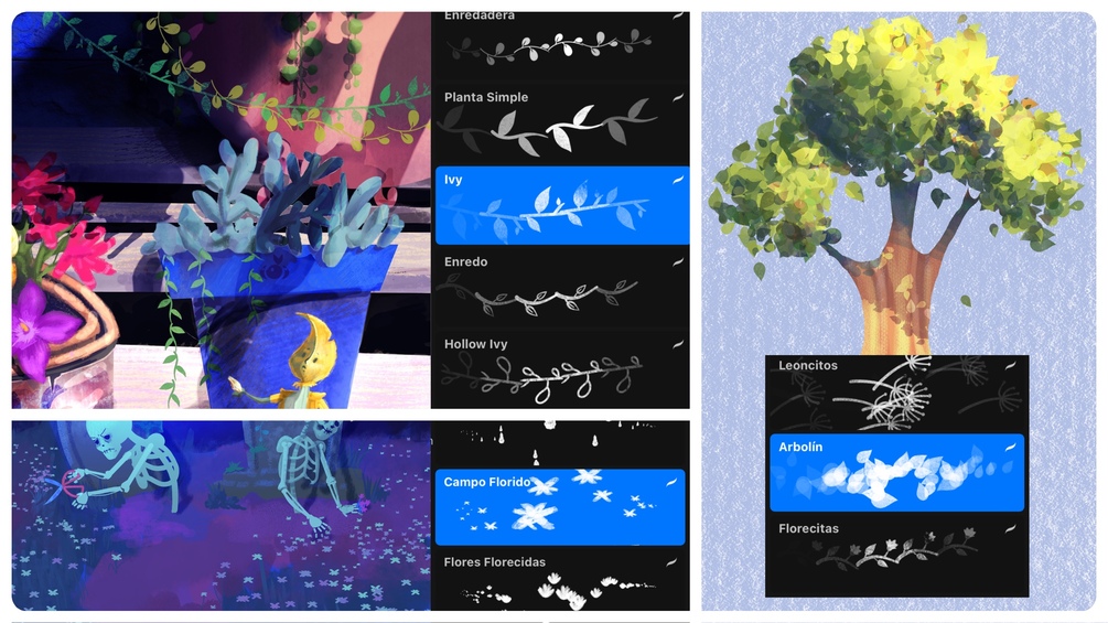 I created these brushes with the purpose of decorating illustrations or packaging by adding nice touches of plants and making the work easier and cuter. The dual color ones are my favorite to decorate some illustrations with simple backgrounds, the normal wreath brushes can also help with illustrations where you you want to and cute climbing plants, the foliage ones can make your job quicker and keeping that illustration like quality touch.
